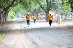The mini marathon was flagged off by Capt. Rajasekar, Vice Principal, from Arasoor Poochikadu Bus Stop to Jeyanthinather Academy of Marine Studies, as part of the 164th Birth Anniversary of Swami Vivekananda.